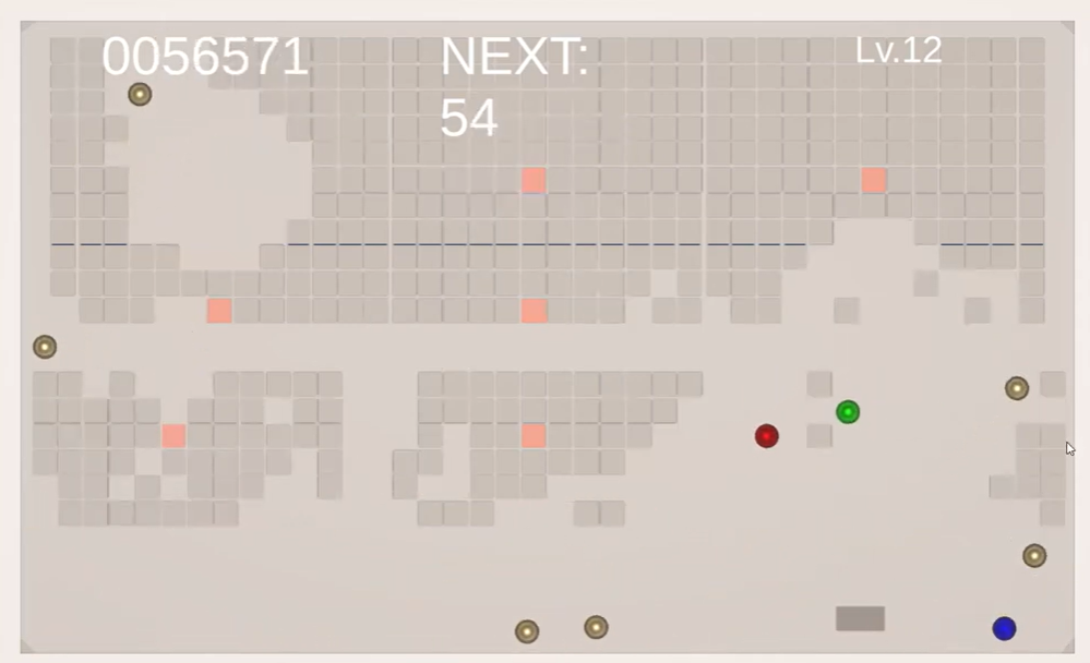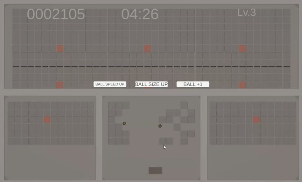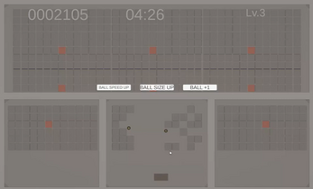 - ビルドを構築: スコアを稼いでレベルアップ!「速度UP」「巨大化」「ボール追加」を選んで、自分だけのビルドを構築しよう。