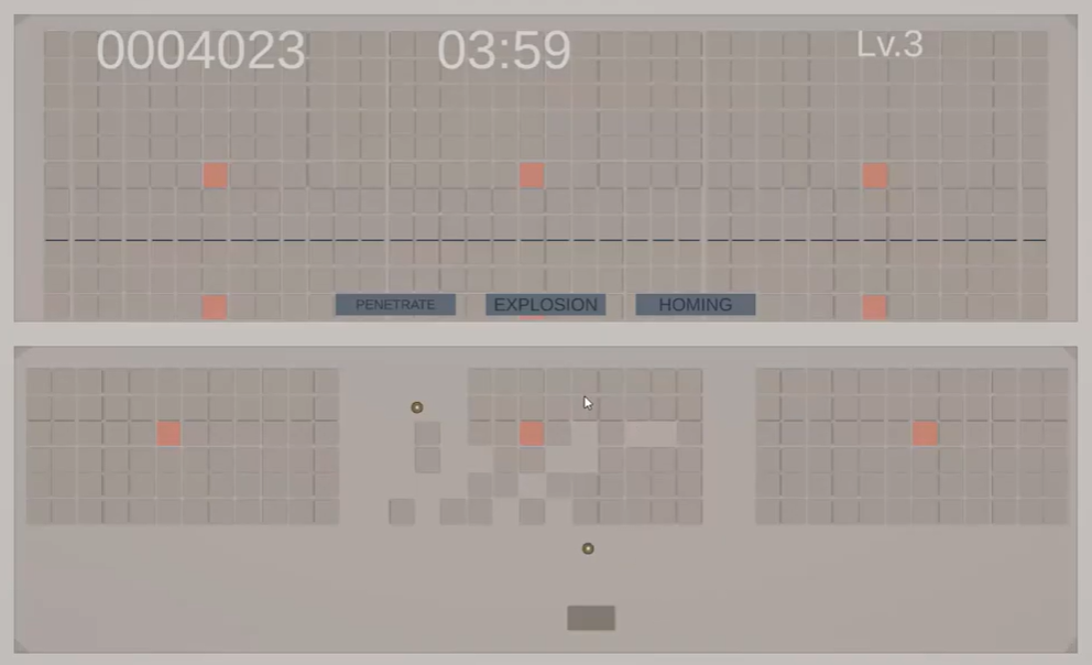 - 60秒ごとの特殊ボールの選択: 1分ごとに訪れる選択。「貫通」「爆発」「追尾」の特殊能力を持つボールをゲットして盤面を変えよう。